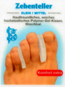 Zehenteiler werden angewendet, um Zehen, die zu eng oder übereinander liegen, zu trennen, so dass keine Druckstellen entstehen können